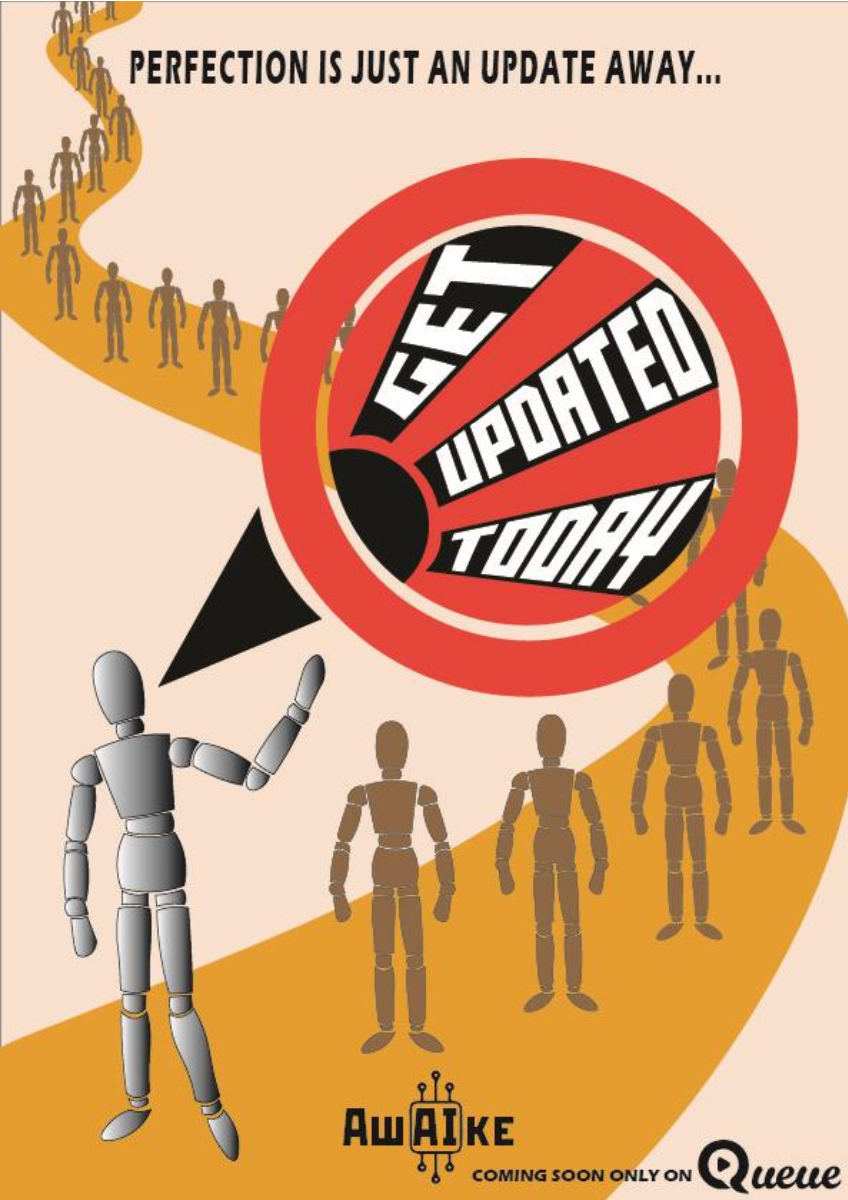 Reimagining Russian Constructivist and Italian Futurism art movements to realise a dystopic society where man and machine are completely intertwined by the introduction of ‘software updates,’ but for a human.